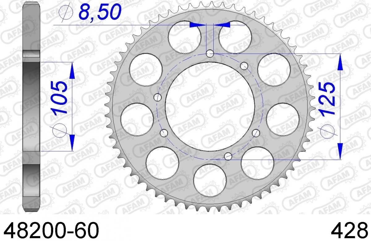 Een aluminium 60 tands AFAM achtertandwiel. De aluminium tandwielen van AFAM zijn compleet vervaardigd uit 7075 aluminium met een T6 oppervlakte verharding. Deze tandwielen zijn perfect ter vervanging van de OEM tandwielen.
