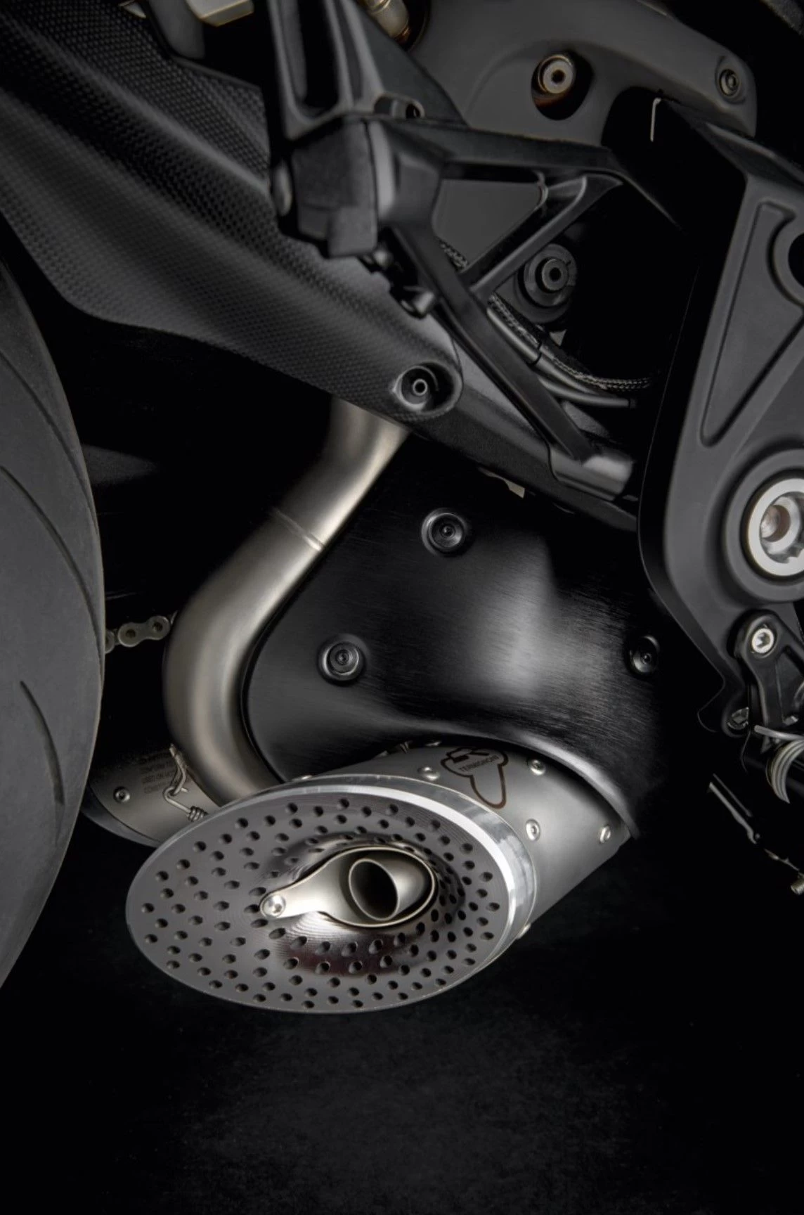 Compleet uitlaatsysteem, ontwikkeld in samenwerking met Termignoni, om het toch al hoge koppel en vermogen van de Diavel 1260 te verbeteren. Gemaakt van staal, synoniem voor robuustheid, met eindkappen in aluminiumlegering gefreesd. Het verbetert het uiterlijk van de muscle-cruiser bij uitstek. Door het complete uitlaatsysteem te installeren, worden zowel het koppel als het vermogen over het hele motortoerentalbereik verbeterd om de prestaties van de motor verder te verbeteren. Het uiterlijk van de Diavel wordt getransformeerd met de installatie van het uitlaatsysteem dankzij de uitlaten aan beide zijden en de vakkundig bewerkte aluminium eindkap.