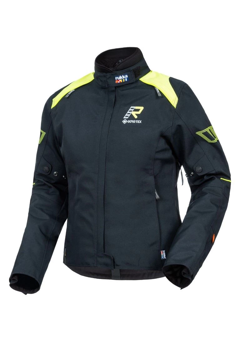 Rukka koos bij het ontwerp van dit dames motorjack voor een dubbellaags 100% ademend, wind- en waterproof Goretex membraan, gelamineerd tegen een slijtvast en duurzaam 600D Cordura shell. Het Cordura materiaal beschermt je bij een eventuele val- of glijpartij terwijl het Goretex membraan je droog houdt zonder klam aan te voelen. Op de warmere dagen zorgen ventilatiedelen op de zij, schouders en rug voor de nodige verkoeling.