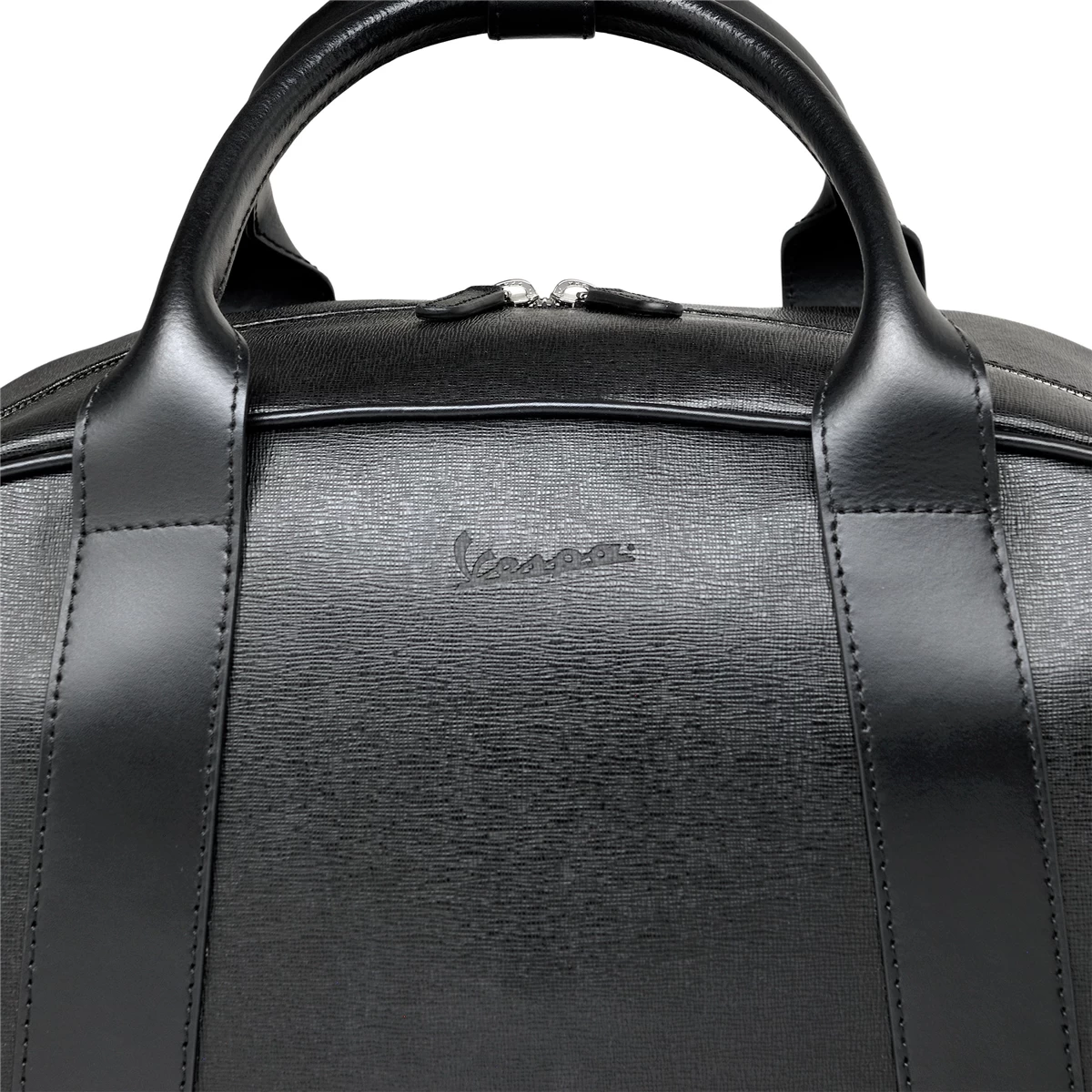 De perfecte bagage om mee te rijden op je Vespa. Deze eersteklas lederen tas, met speciale textuur op het hoofdgedeelte en verstevigingen van glad leer aan de onderkant en handgrepen die een gemakkelijke en stevige bevestiging op de bagagedrager mogelijk maken. Gemakkelijk te verwijderen en perfect voor dagelijks gebruik. Vespa-logo in reliëf. Deze tas is getest en goedgekeurd door Piaggio voor gebruik op Vespa. Achterbagagedrager code 1B000681 (zwart) of code 606525M (verchroomd) wordt apart verkocht.